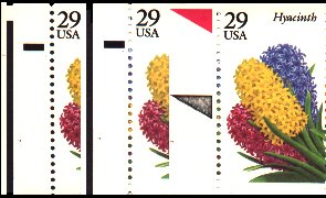 9 | Blue, Black & White color ladder | . | 41 | Six CC1 color squares over left stamp | . |