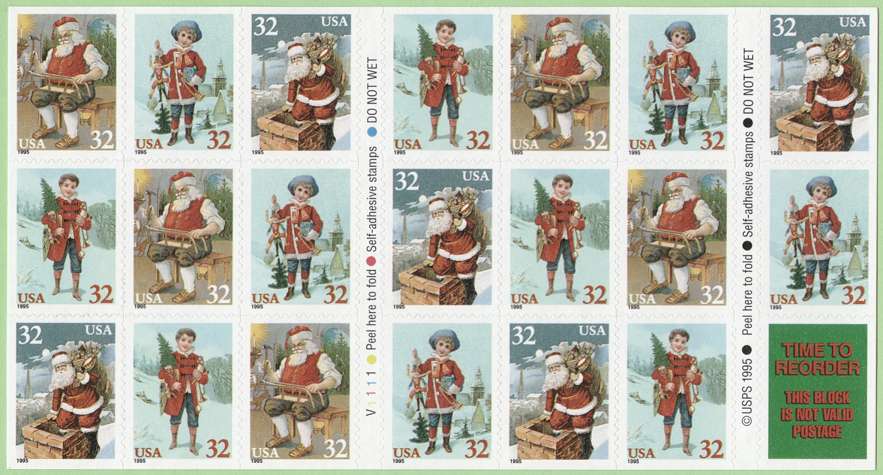 | Marginal Markings | Plate Numbers · "Peel here to fold · Self-adhesive stamps · DO NOT WET" · "©USPS 1995" |