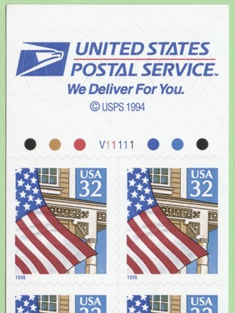 | Marginal Markings | USPS Logo · Plate Numbers · "Peel this strip and fold here" · Color Circles |