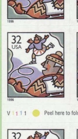 convertible booklet of 20 (Item 6649), and a 32-cent Skaters stamp (Item 5511), in a