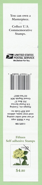 | Note | Booklet covers are found with 12 1/2 and 8 1/2 gauge scoring. The glue on the 8.5 covers is either Easy (easy to separate the covers) or Agressive (very hard to open the cover without damage). The glue on the 8.5 covers is Easy. The stamps inside the 8.5 covers can have either Smooth or Mottled Tagging. |