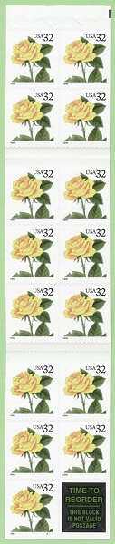 issue a 32-cent Yellow Rose stamp, in a self-adhesive convertible booklet of 20 (Item