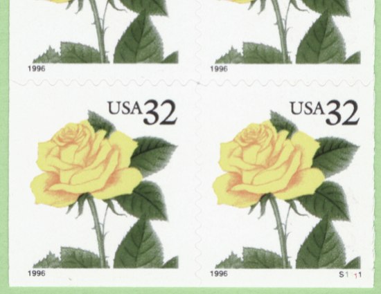 issue a 32-cent Yellow Rose stamp, in a self-adhesive convertible booklet of 20 (Item