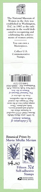 issue two 32-cent Merian Botanical Prints stamps, in a self-adhesive vendible booklet of