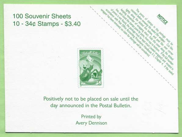 Uncut Press sheet (Bottom): Item Number 560286, $20.40 (USA Philatelic catalog).