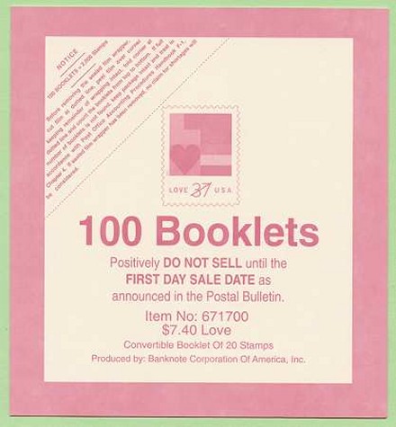 Philatelic Requirement Authorized philatelic centers requiring the $7.40 Love special booklet of 20 must order Item 671700 from their designated SDO using a separate PS Form 17.