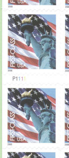 | Official Announcement | The Postal Service ™ will issue a nondenominated First-Class Mail® definitive stamp Lady Liberty and U.S. Flag on December 8, 2005, in Washington, DC.The stamp designed by Terrence W. McCaffrey of the U.S. Postal Service®, Washington, DC, also goes on sale nationwide December 8, 2005. The stamp features two of the most recognized symbols of the United States: the Statue of Liberty and the American flag. Carl and Ann Purcell of Alexandria, Virginia, took separate photographs of the Statue of Liberty and the American flag and combined them to create the montage used in the stamp art. The stamp will be issued in the following nondenominated formats: • Water-activated gum (WAG) pane of 100 (Item 108500). • Pressure-sensitive adhesive (PSA) ATM sheetlet of 18 (Item 567600). • PSA pane of 20 (Item 567700). • PSA vending booklet of 20 (Item 674300). • PSA double-sided booklet of 20 (Item 674400). • PSA coil of 100 (Item 783000). • WAG coil of 3,000 (Item 783400). |
