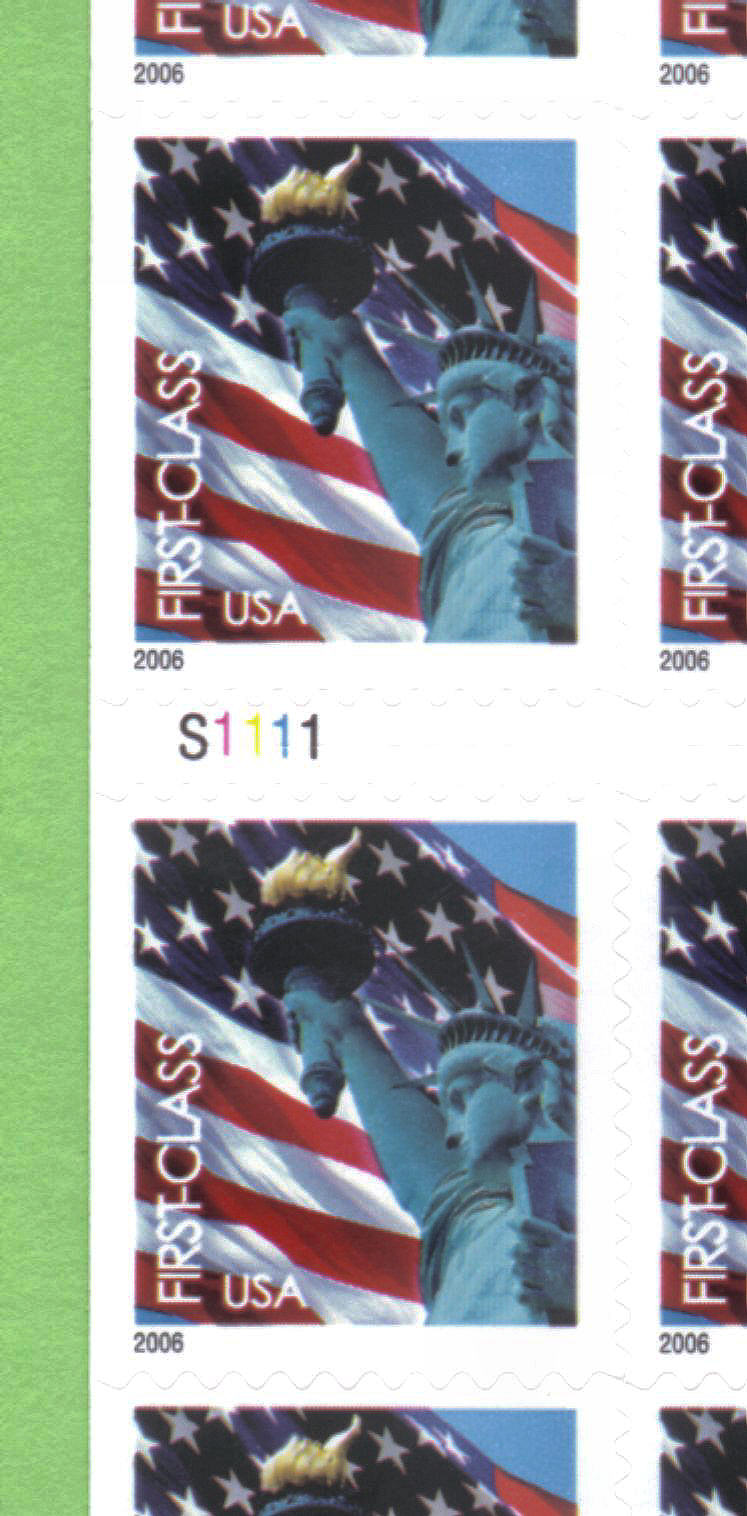 | Official Announcement | The Postal Service ™ will issue a nondenominated First-Class Mail® definitive stamp Lady Liberty and U.S. Flag on December 8, 2005, in Washington, DC.The stamp designed by Terrence W. McCaffrey of the U.S. Postal Service®, Washington, DC, also goes on sale nationwide December 8, 2005. The stamp features two of the most recognized symbols of the United States: the Statue of Liberty and the American flag. Carl and Ann Purcell of Alexandria, Virginia, took separate photographs of the Statue of Liberty and the American flag and combined them to create the montage used in the stamp art. The stamp will be issued in the following nondenominated formats: • Water-activated gum (WAG) pane of 100 (Item 108500). • Pressure-sensitive adhesive (PSA) ATM sheetlet of 18 (Item 567600). • PSA pane of 20 (Item 567700). • PSA vending booklet of 20 (Item 674300). • PSA double-sided booklet of 20 (Item 674400). • PSA coil of 100 (Item 783000). • WAG coil of 3,000 (Item 783400). |