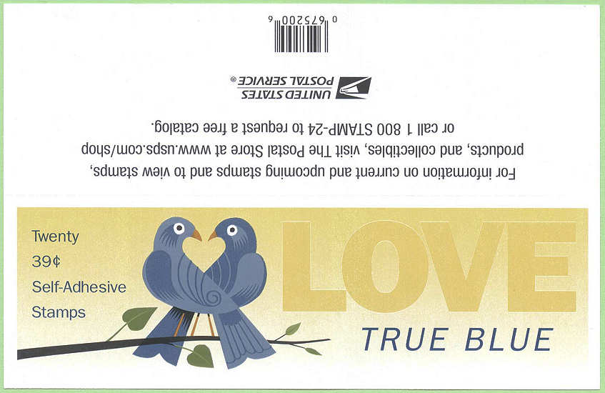 Initially, stamp distribution offices (SDOs) will receive two automatic distributions of this denominated 39-cent Love: True Blue special stamp in PSA booklets of 20.