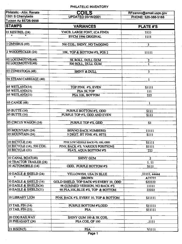 Stamp Club, announced in late December details on the new 2001 definitive coils. You can
