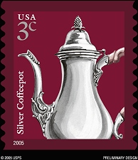 that a 3¢ water-activated coil stamp depicting a silver coffee pot is scheduled