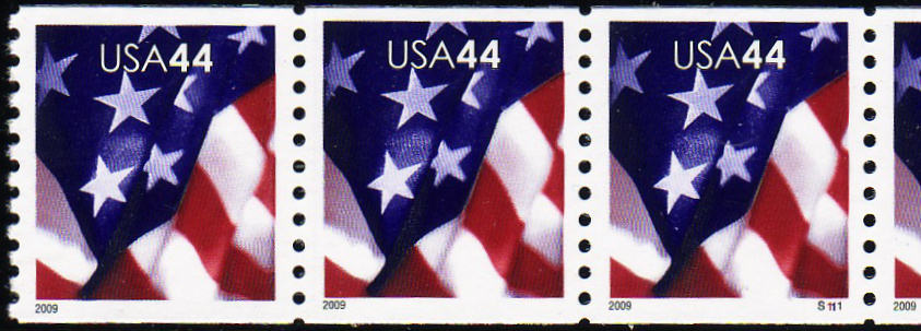 4393 44˘ Flag, self-adhesive Ashton-Potter-printed coil stamp, serpentine die cut 9˝ vertical
