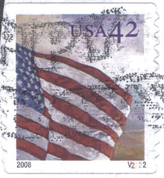 I verified, using a 10x magnifier, that all four corners are rounded, and the stamp is indeed from a larger coil. The cancel is a spray-on with "Happy Holidays", which indicates that the stamp was used during the 2008 holiday season. The stamp is a cut square, so there is no clue as to where it originated. The original envelope is not available. Let the hunt begin! Ron Archer reported, after this article was posted, that " I received the 24/7 V2222 PS/9 (Spaces-Rounded Corners) about 3 weeks ago from Al Haake. This is from the Avery 3K/10K coil roll (Scott 4247a)." |