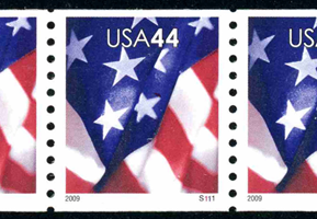 | Official Announcement | On May 1, 2009, in Washington, DC, the Postal Service™ will issue a 44-cent, definitive U.S. Flag stamp in one design. This stamp will be available in the following formats: