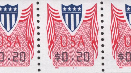 The coil of 3000 supplied to the USPS bore no denomination. The postage amount was applied at the point of purchase from a computerized vending machine called a Postage and Mailing Center (PMC), manufactured by UNISYS. |