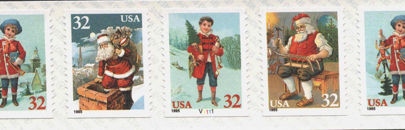 Plate # V1111 - The Boy with the Christmas tree stamp , #3017, has the plate number on it. |