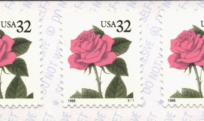 Sold in rolls of 5000 or strips of 20 with a plate number. |