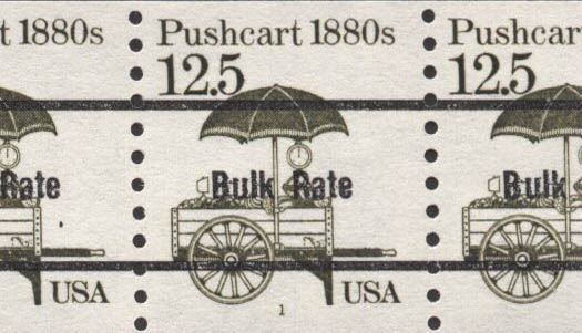 | Scott# 2133a | Plate # 1, 2 (Untagged) (Precanceled with Bulk Rate between two lines). |