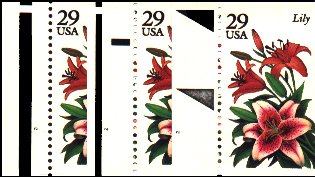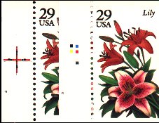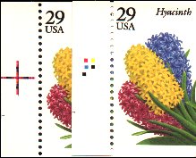 9 | Blue, Black & White color ladder | . | 41 | Six CC1 color squares over left stamp | . |