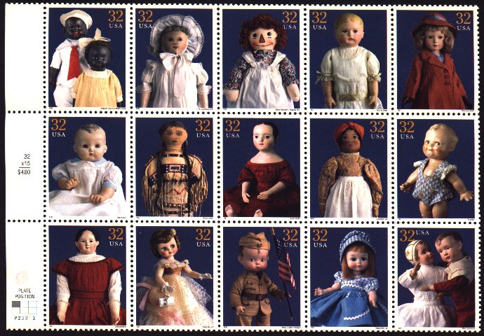 White doll booklets exist mounted normal (top of the stamp at right)