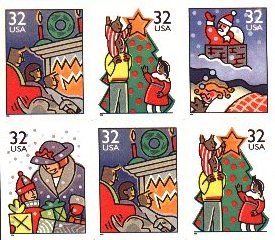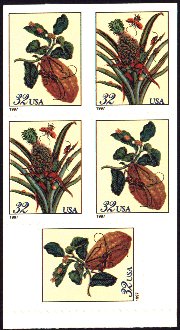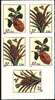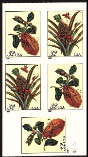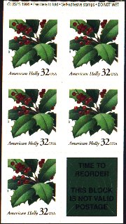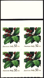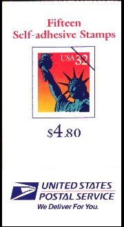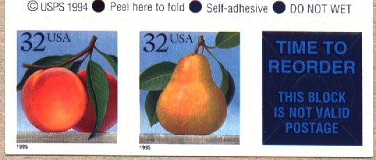 Books of (15) stamps contain a strip of stamps in three parts: top, middle and bottom.