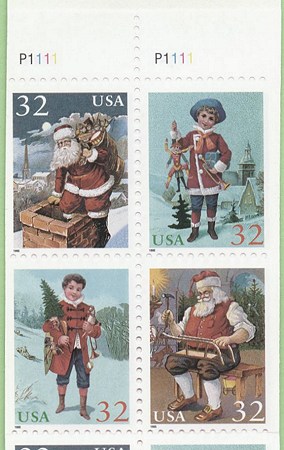 Note | Each booklet contains two different panes. On one, the top two stamps are the Santa at the chimney and the Boy with a jumpin jack. The other pane has the Boy with a tree and Santa with a sled. |