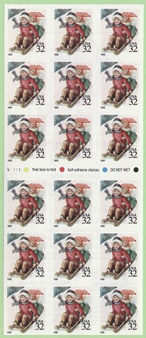 issue a sheetlet of 18 32-cent Holiday Contemporary (Children Sledding) peel-and-stick