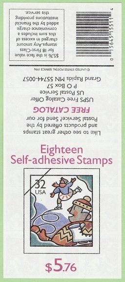 convertible booklet of 20 (Item 6649), and a 32-cent Skaters stamp (Item 5511), in a