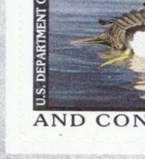 DC, on July 1, 1998. For the first time, the Migratory Bird Hunting and Conservation stamp will be issued in two formats the traditional gummed version and a new Self-Adhesive Federal Duck Stamp Single. The stamp size of this new version is the same size as the gummed version. This single self-adhesive stamp can be peeled from its carrier sheet which is the size of U.S. paper currency and fits easily in cash drawers. |