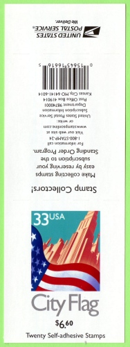 Distribution: 33-Cent City Flag Definitive Stamp, PSA Convertible Booklet of 20, Item Number 661600