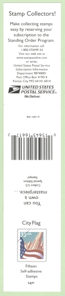 Distribution: 33-Cent City Flag Definitive Stamp, PSA Vending Booklet of 15, Item Number 661700