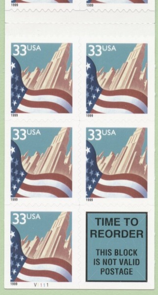Scott # 3278a, b, c BK275 | Plate V1111, V1112, V1121, V1212, V2212 |