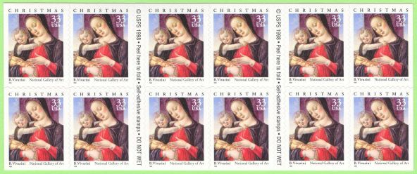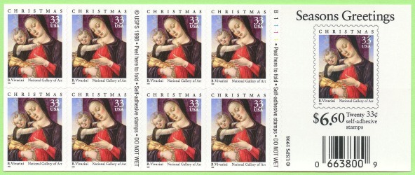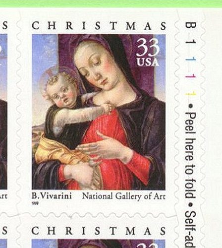 Official Announcement | Since 1966, with the issuance of a 5-cent Madonna and Child stamp by Hans Memling, these traditional Christmas stamps have attracted a devoted following. This years design is based on a detail of Venetian artist Bartolomeo Vivarinis Madonna and Child masterpiece, circa 1475. This tempera-on-wood-panel painting is considered one of his more important works. |