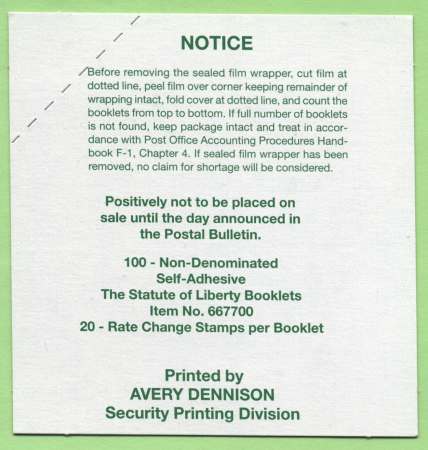 Stamp distribution offices (SDOs) will receive two distributions of the nondenominated Statue of Liberty booklet for their standard automatic distribution quantities. The first distribution will end November 13; and the second distribution will end December 12. 2000. Distributions are rounded up to the nearest master carton size (4,000 books).