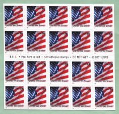 Marginal Markings | Plate Numbers · Peel here to fold · Self-adhesive stamps · DO NOT WET · © 2001 USPS |