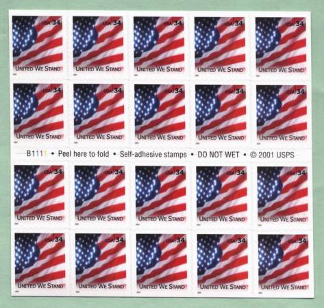 issue a 34-cent United We Stand definitive stamp on October 24, 2001, in Washington, DC.