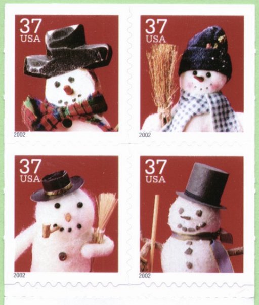 issue four 37-cent Snowmen stamps on October 28, 2002, in Houghton, Michigan. The
