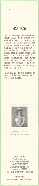 issue 37-cent Mary Cassatt commemorative stamps (Item 671900) in a
