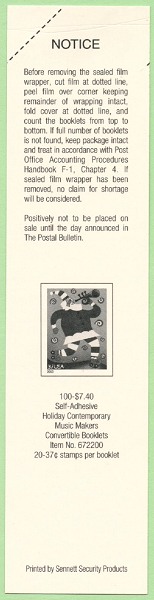 Distribution: Item 672200, Holiday Music Makers Double-sided Convertible Booklet of 20