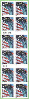 Official Announcement | The Postal Service ™ will issue a nondenominated First-Class Mail® definitive stamp Lady Liberty and U.S. Flag on December 8, 2005, in Washington, DC.The stamp designed by Terrence W. McCaffrey of the U.S. Postal Service®, Washington, DC, also goes on sale nationwide December 8, 2005. The stamp features two of the most recognized symbols of the United States: the Statue of Liberty and the American flag. Carl and Ann Purcell of Alexandria, Virginia, took separate photographs of the Statue of Liberty and the American flag and combined them to create the montage used in the stamp art. The stamp will be issued in the following nondenominated formats: • Water-activated gum (WAG) pane of 100 (Item 108500). • Pressure-sensitive adhesive (PSA) ATM sheetlet of 18 (Item 567600). • PSA pane of 20 (Item 567700). • PSA vending booklet of 20 (Item 674300). • PSA double-sided booklet of 20 (Item 674400). • PSA coil of 100 (Item 783000). • WAG coil of 3,000 (Item 783400). |