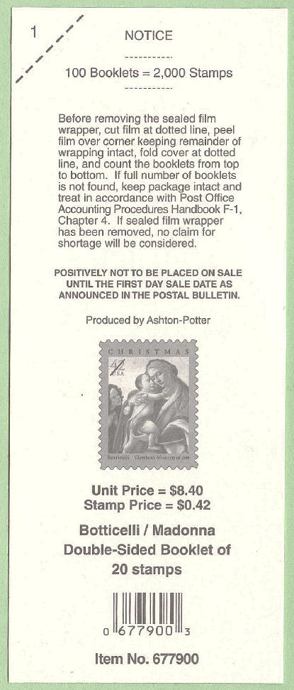 booklet of 20 stamps (Item 677900). Designed by Richard Sheaff of
