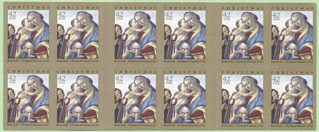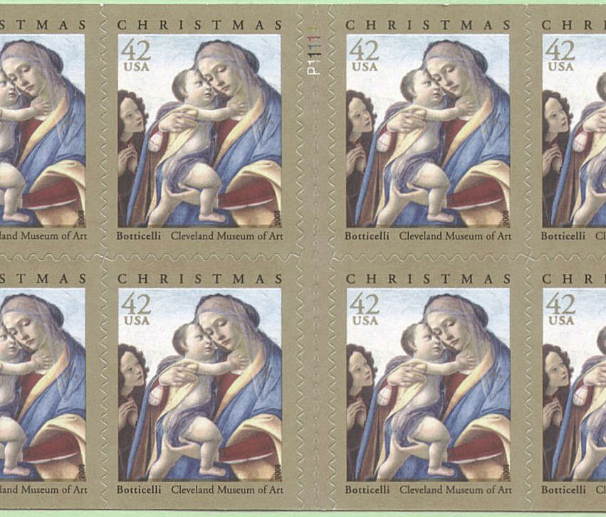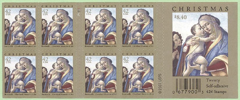 On October 23, 2008, in New York, New York, the Postal Service™ will issue a 42-cent, Christmas: Virgin and Child with the Young John the Baptist by Sandro Botticelli special